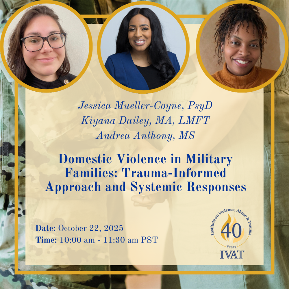 Domestic violence in military families presents unique clinical, cultural, and systemic challenges for providers, advocates, and legal professionals. This webinar examines the intersection of trauma, military culture, deployment-related stress, and systemic responses to family violence. Participants will explore risk factors such as PTSD, substance use, and power dynamics. We will also address barriers to reporting and accessing services. Evidence-based and trauma-informed strategies will be emphasized, with an added focus on culturally responsive care for diverse military families.
